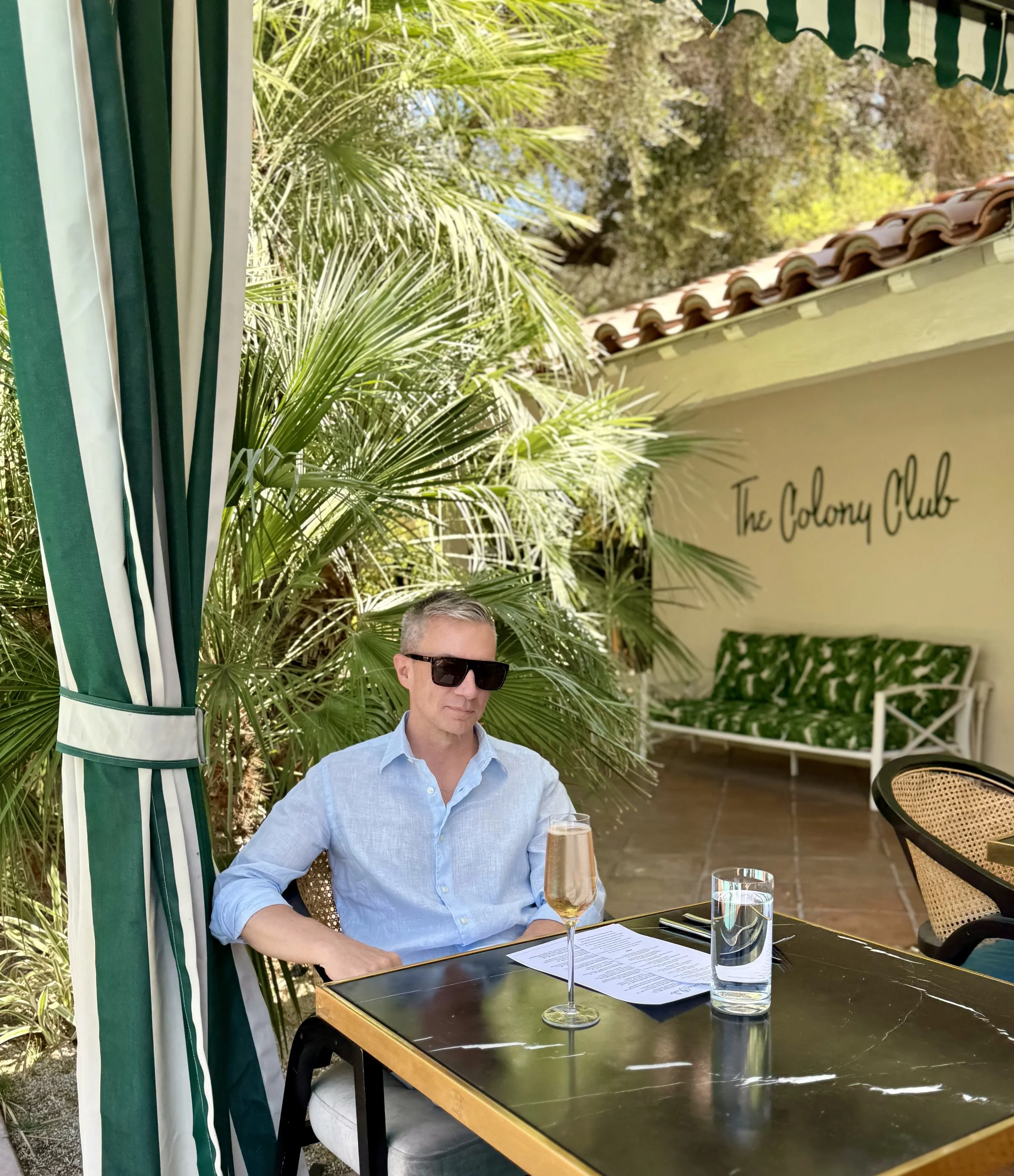 Lunch at the Colony Club unfolds slowly. Palm shadows stretch across striped loungers, the pool reflects just enough movement, and the table settles into the kind of light that makes everything feel considered.