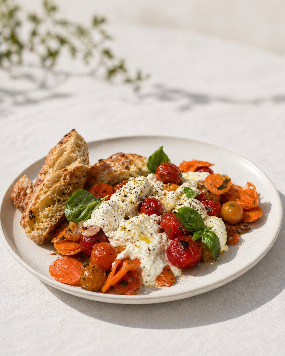 Burrata, Gathered Strawberry Cobbler, Lightened Mississippi Tenderloin Hangover Helper Nicoise, Composed Layered Chicken Pot Pie Southern Red Gravy Crispy Chicken, Pickled Slaw Garbage Salad, Neat