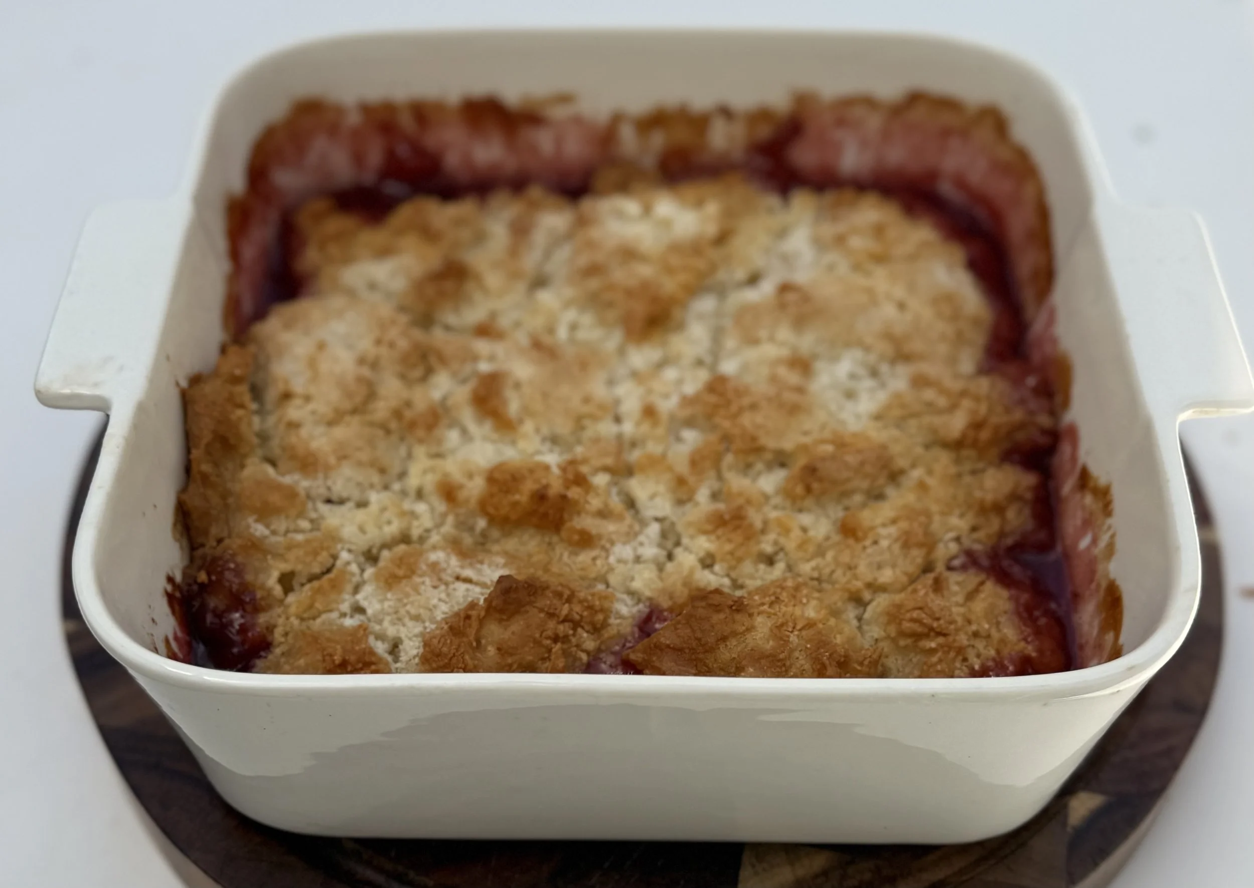 On a warm afternoon at the Farmers Market, when strawberries are at their peak, cobbler feels less like a recipe and more like a return.